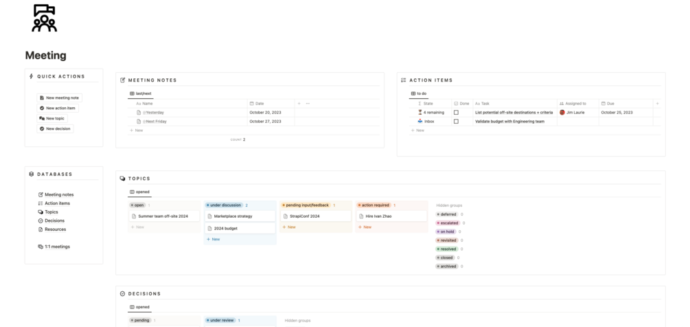 We're letting you in on a little secret: this is the exact template we use at Strapi for Founder and Leadership meetings.